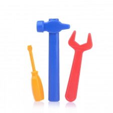 В наборе: молоток (24х9,5 см), гаечный ключ (20,5х7 см), отвёртка (16,5х4 см). Материал: пластик. Соответствует требованиям безопасности и стандартам качества продукции.