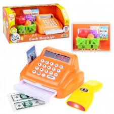 В наборе: кассовый аппарат, корзина с продуктами. Звуковые эффекты (для работы нужны 3 батарейки "АА"). Материал: пластик. Соответствует требованиям безопасности продукции.