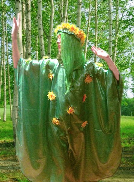 Игровой комплект "Весна 2". В комплект входит венок, платье-накидка с нашитыми цветами, парик.