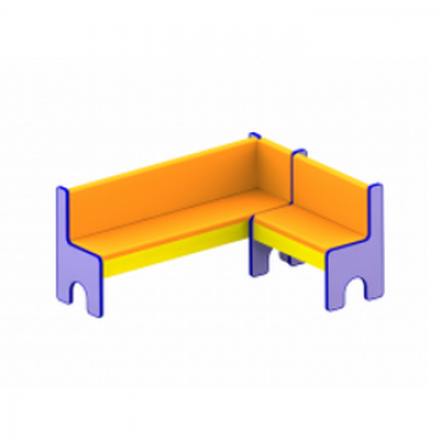 Уголок кухонный. Выполнен из ламинированной ДСП (ЛДСП) 16 мм, обрамлен кантом ПВХ 2 мм, все углы закруглены. Яркий, оригинальный мягкий уголок, хорошо сочетается с кухонной мебелью, поможет объединить детей в одной игровой зоне. Цвет на выбор.