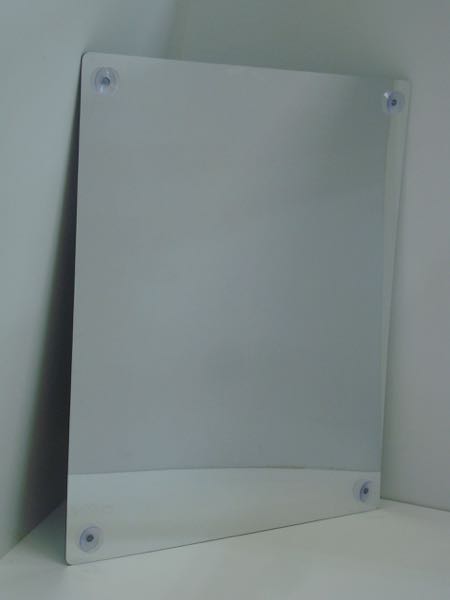 Зеркало для прозрачного мольберта. Занятия живописью на стекле – прекрасный способ творческого самовыражения детей. С помощью зеркала ребенок с легкостью может нарисовать автопортрет, окружить свое отражение выдуманными персонажами, создать вокруг себя сказочный мир. Зеркало выполнено из безопасного акрилового стекла и имеет 4 присоски из силикона, с помощью которых крепится к акриловому стеклу прозрачного мольберта.