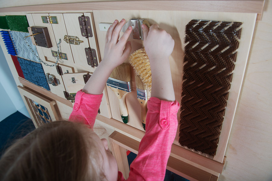 Тактильно-развивающая панель «Кисточки». Панель состоит из пяти кисточек разной жесткости, а также жесткого покрытия «Елочка».